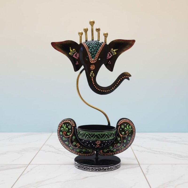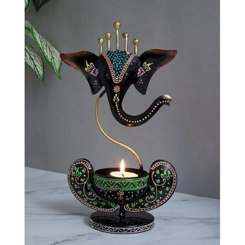Furnshine – Kipling Black Iron Painted Lord Ganesha Tea Light Candle Holder, Ganpati Diya Stand for Puja Room & Temple, Diwali Decoration