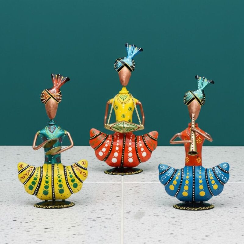 Furnshine – Cannon Indian Handcrafted Metal Musician Set – Ethnic Rajasthani Decor for Home, Office & Gifts (Set of 3)