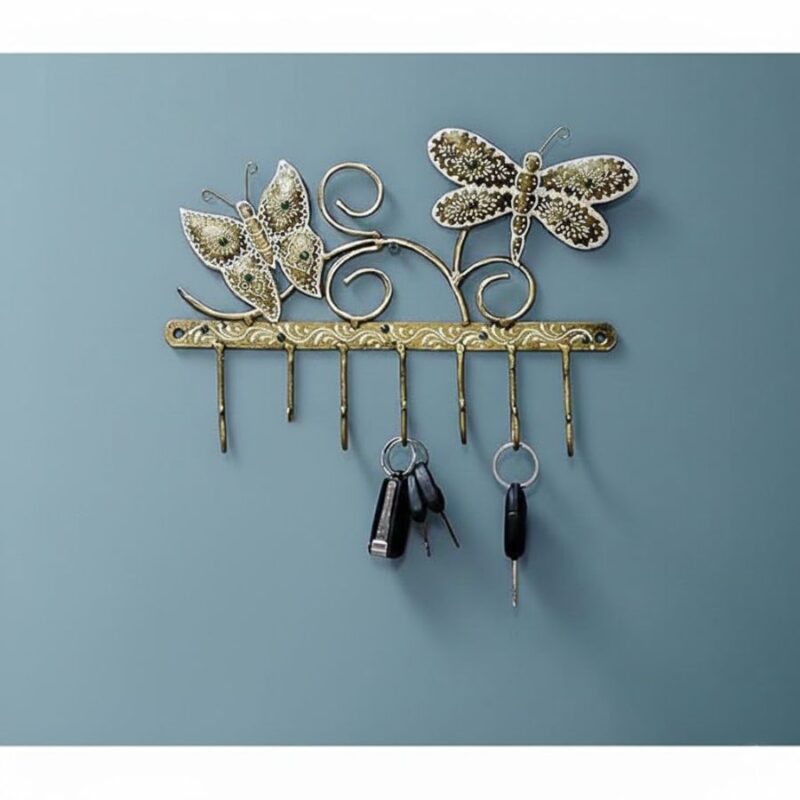 Furnshine – Sherlock Elegant Butterfly Design Key Holder – Durable Metal Wall Mounted Key Rack with 7 Hooks