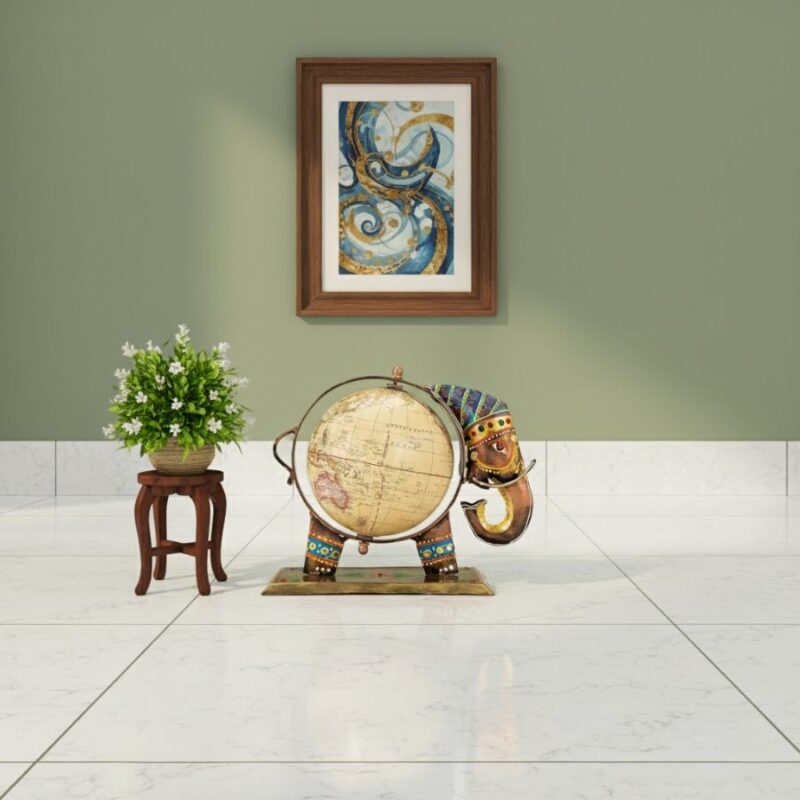 Furnshine – Barron Handcrafted Elephant Globe Showpiece – Artistic Iron Vintage World Map Decor