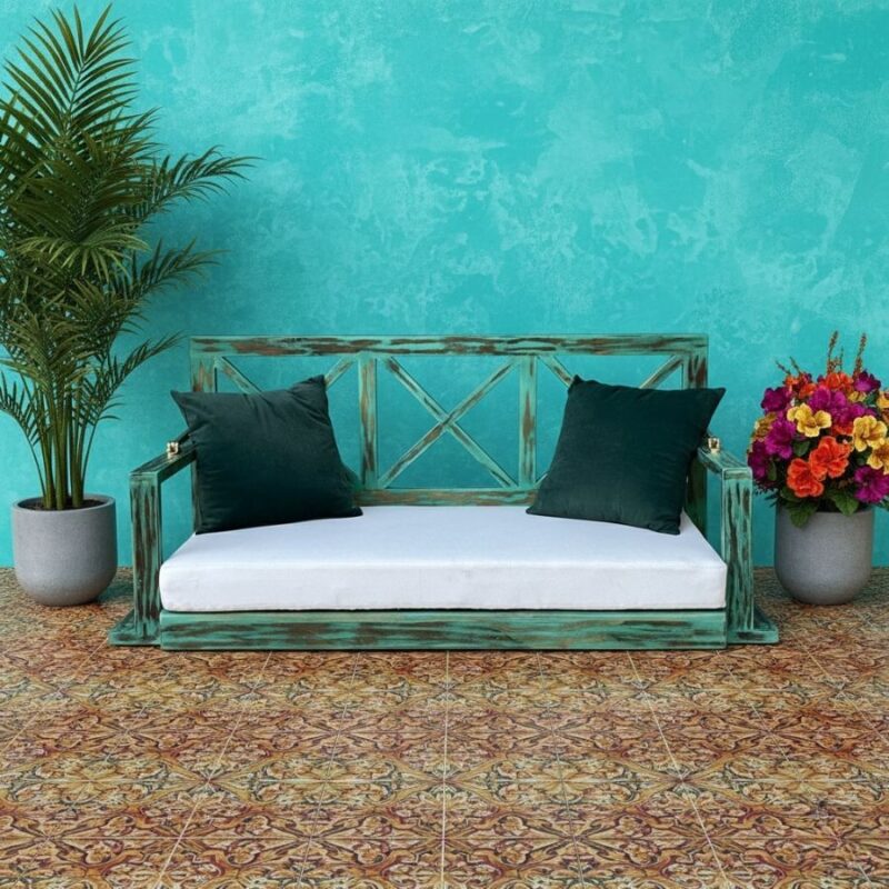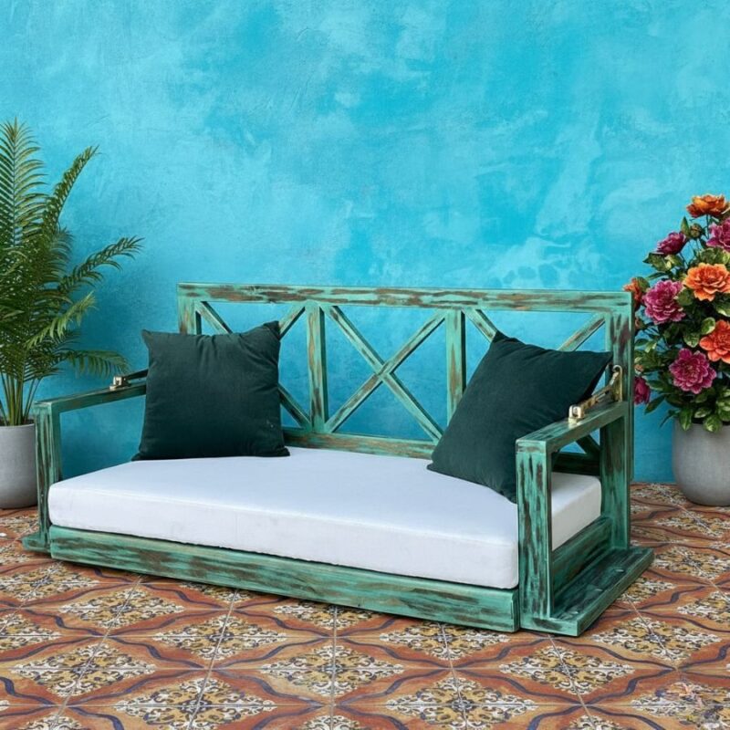 Furnshine – Lucetta Reversible Solid Sheesham Wood Rustic Green Swing (Jhula)