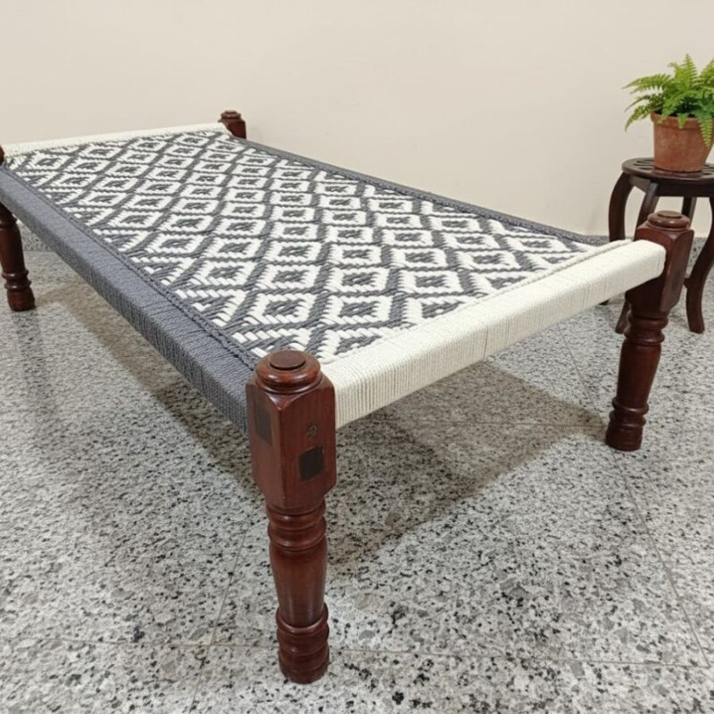 Furnshine – Missy Solid Sheesham Wood Handwoven Charpai/Khatiya (Grey & White)