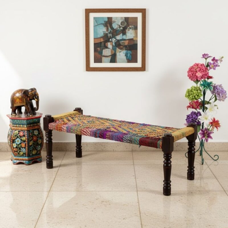 Furnshine – Denver Handwoven Sheesham Wood Bench (Multicolor)