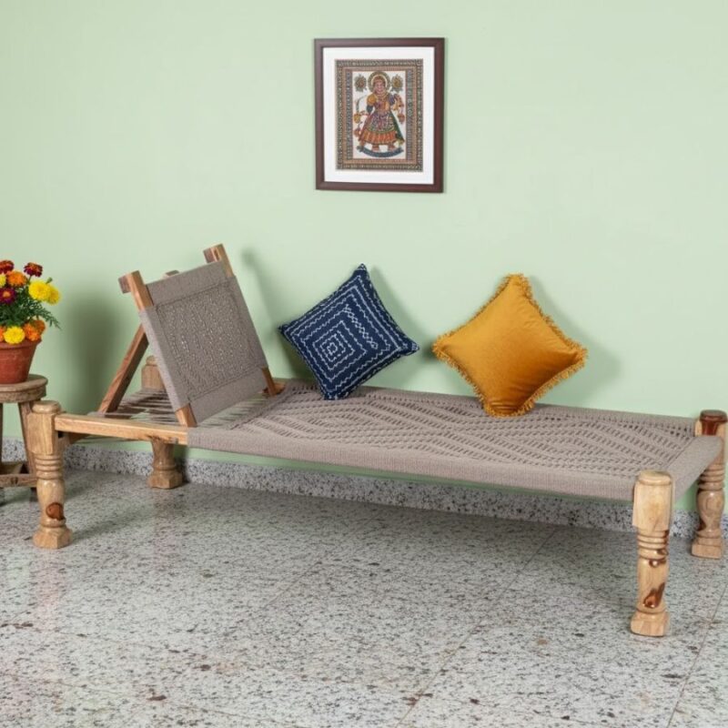 Inspired by India’s age-old sleeping tradition, our wooden charpai beds combine classic woven comfort with modern sturdiness. Made with solid-wood frames and durable weaving, these beds provide excellent support and breathability. Perfect for bedrooms, guest rooms, or heritage-style interiors, charpai beds offer comfort, durability, and cultural authenticity.