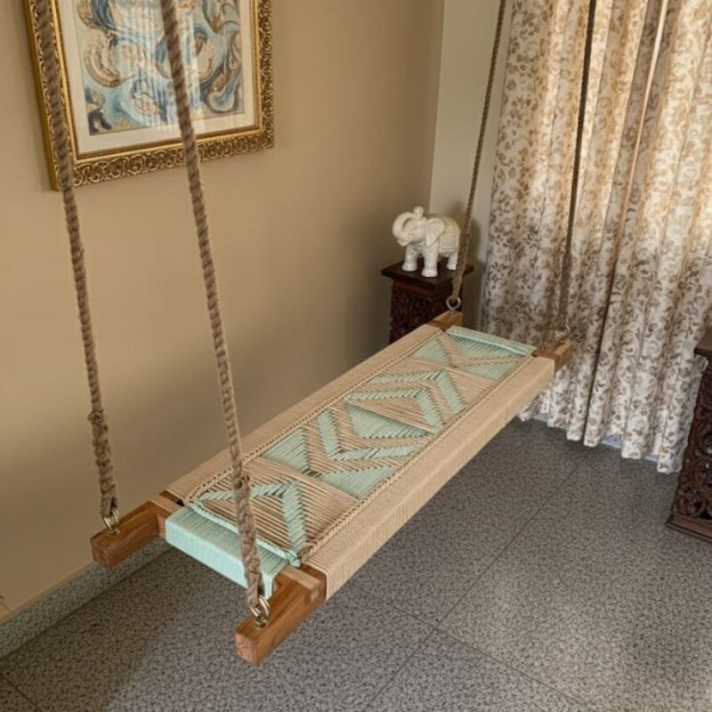 Furnshine – Pat Geometric Woven Swing for Kids & Adults (Beige & Pastel Green)