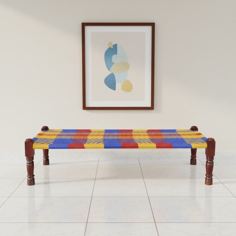 Furnshine – Kamden Solid Wood Rajasthani Silk Woven Charpai/Khatiya (Multicolor)