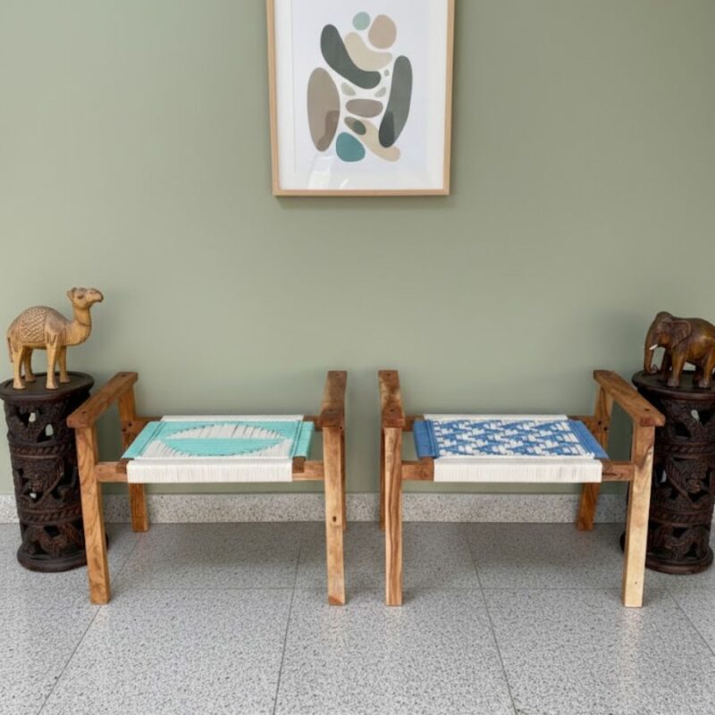 Furnshine – Handwoven Colorful Iron Base Woven Mudha Stool | Handmade Artisan Seating for Home Decor