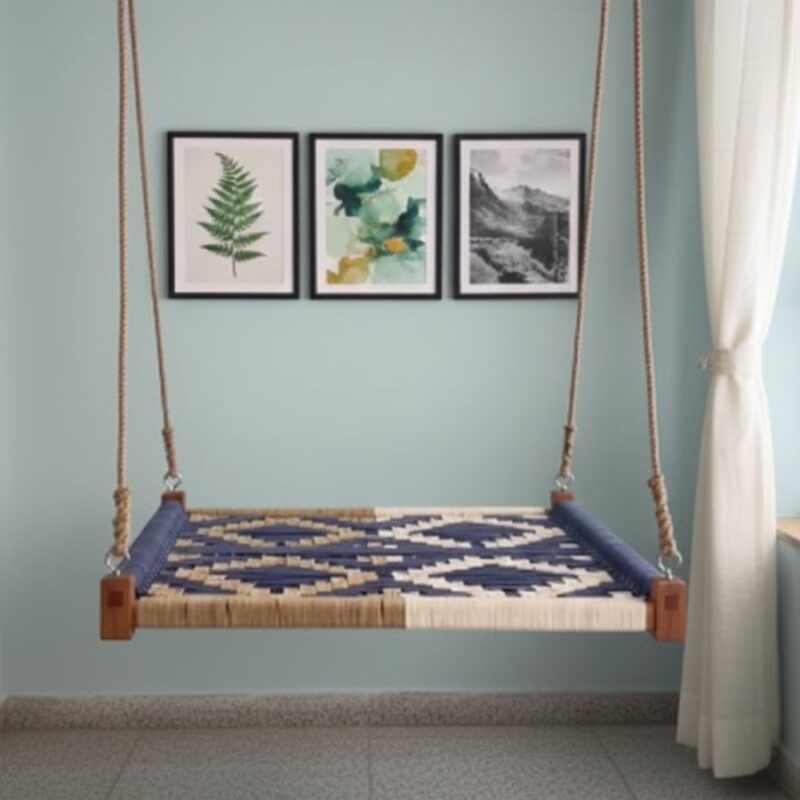 Furnshine – Laurie Handwoven Charpai Swing (Navy Blue, White & Beige Color)