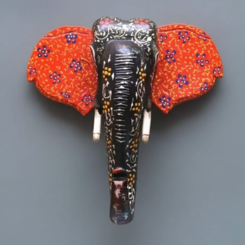 Furnshine – Handcrafted Wooden Painted Elephant Face Wall Décor | Traditional Hand-Painted Folk Art Wall Hanging for Home & Office Decoration
