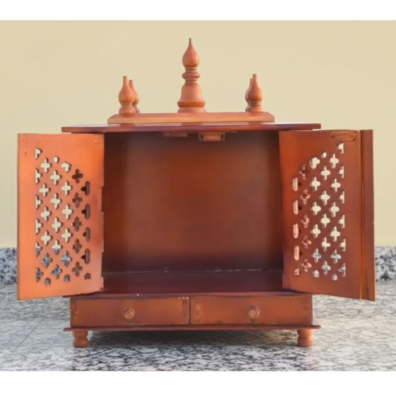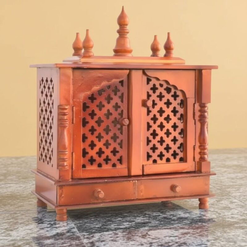 Compact, pre-assembled design suitable for tabletops or dedicated pooja corners.