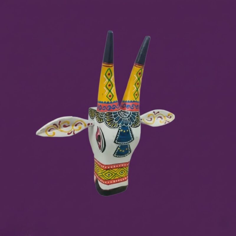 Furnshine – Handcrafted Wooden Painted Cow Face Wall Décor | Colorful Traditional Indian Folk Art Home Decoration