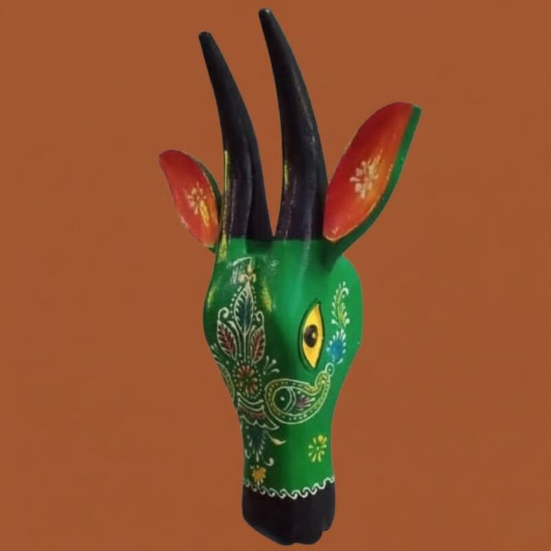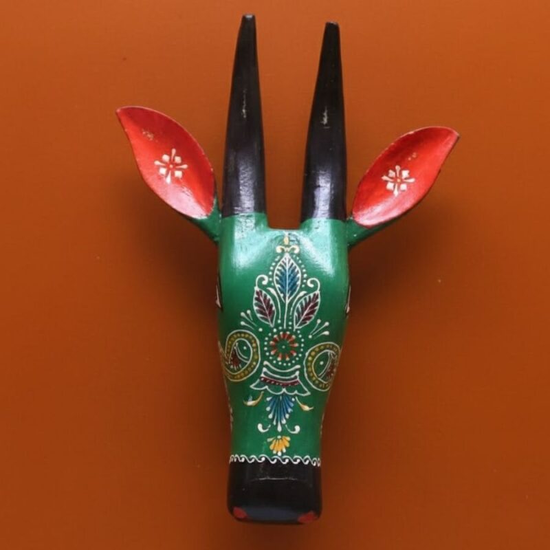 Furnshine – Hand-Painted Green Wooden Cow Face Wall Hanging | 5-Inch Ethnic Folk Art Decor from Rajasthan