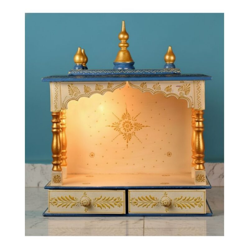 - Handcrafted wooden/MDF home temple in white, blue and golden finish.