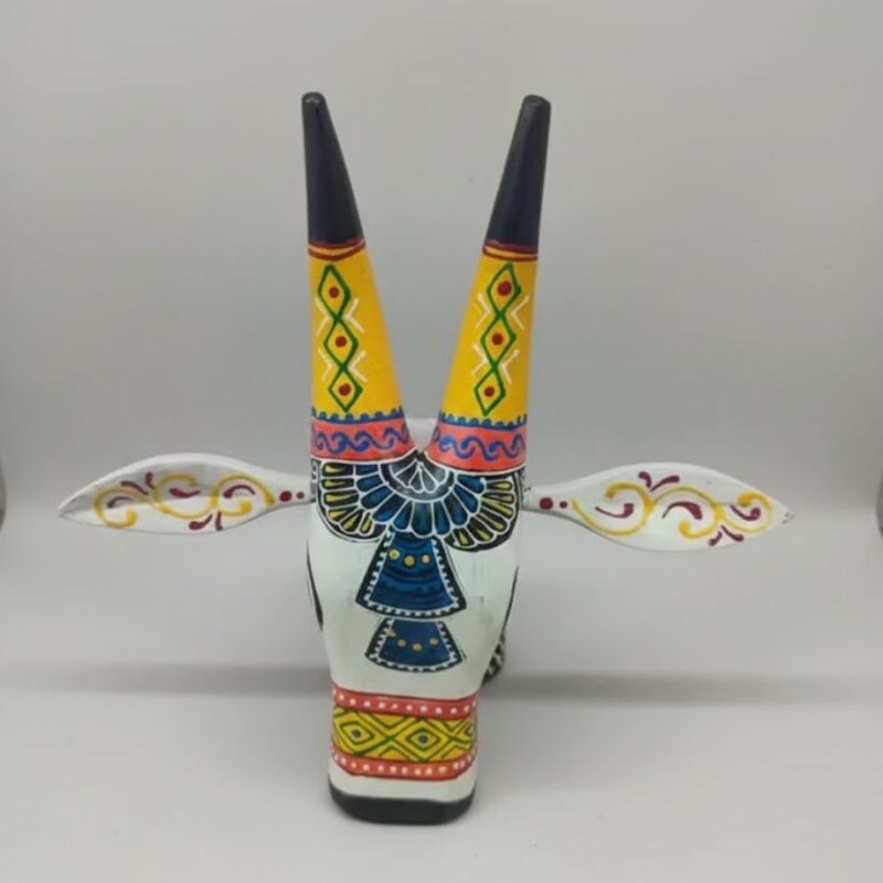 Furnshine – Hand-Painted Wooden Cow Face Wall Hanging | 10x2x10 Inch White Yellow Tribal Art Home Decor Piece