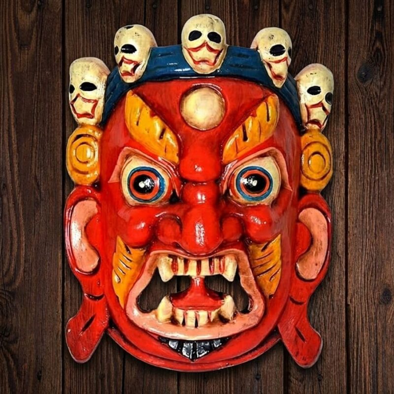 Furnshine – Handcrafted Bhairab Mahakal Wooden Mask – Fierce Hindu God Decorative Wall Hanging Protector