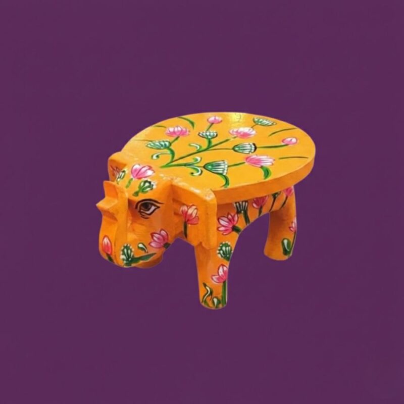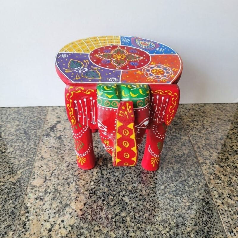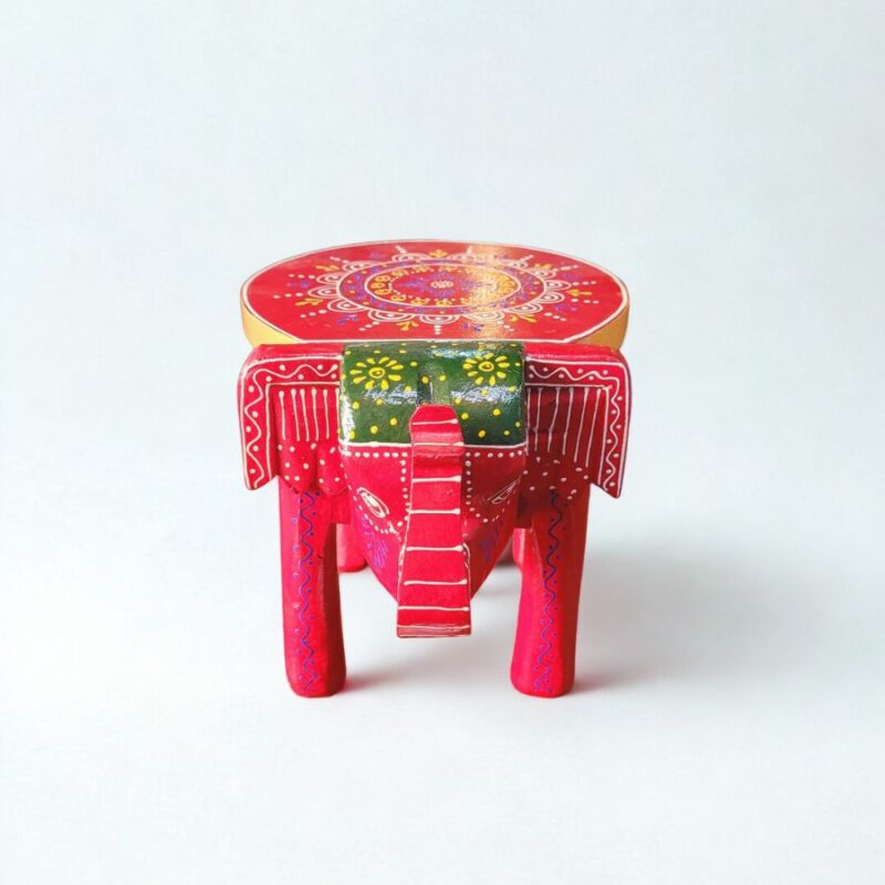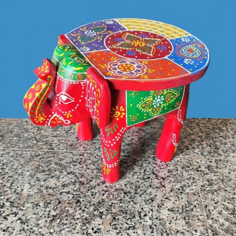 Furnshine – Wooden Elephant Stool Multicolour Design – Vibrant Indian Handicraft for Home, Pooja & Foyer Decor (8″H x 10.5″L x 8″W)