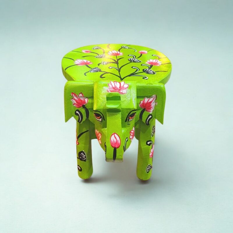 - Handcrafted wooden elephant stool with floral hand-painting
