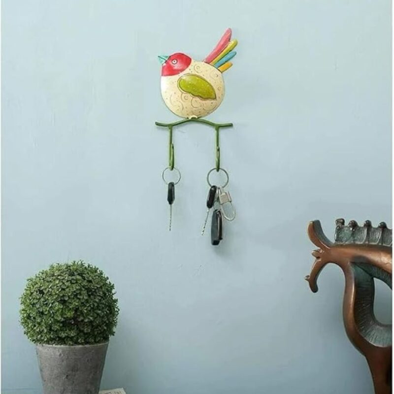 Furnshine – Alcott Vibrant Single Bird Two Metal Wall Hook | Hand-Painted Decorative Hanger for Home, Balcony & Kids Room Decor