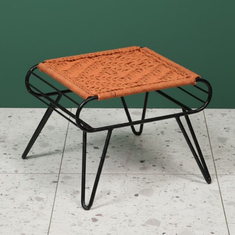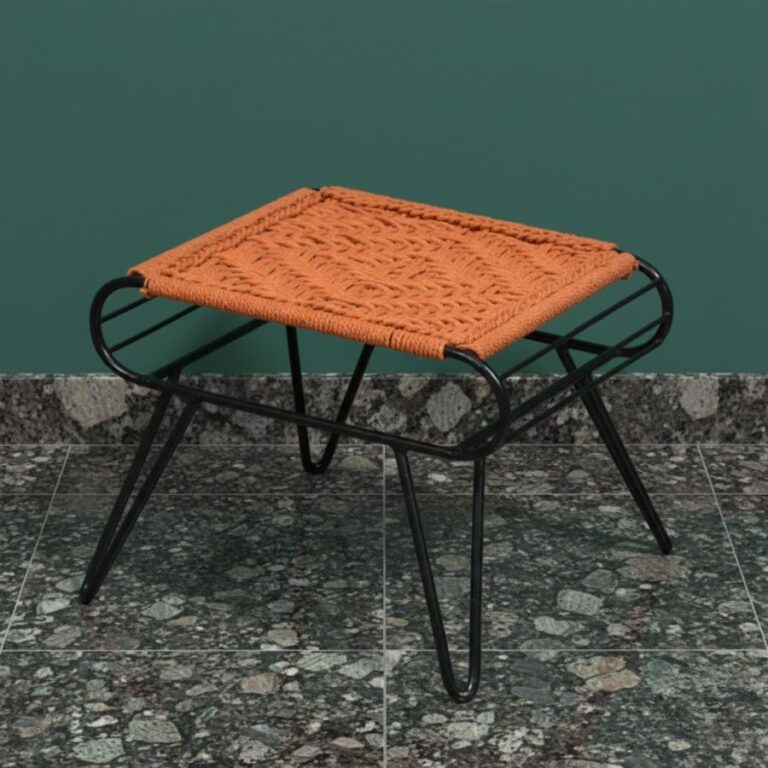 Furnshine – Aldous Rust-Orange Woven Stool with Black Metal Legs