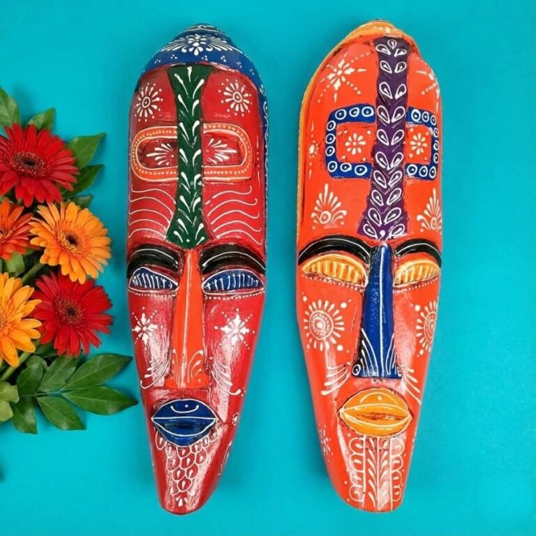 - Hand-painted vibrant colors (red, blue, orange, green) with authentic African-Egyptian tribal designs.