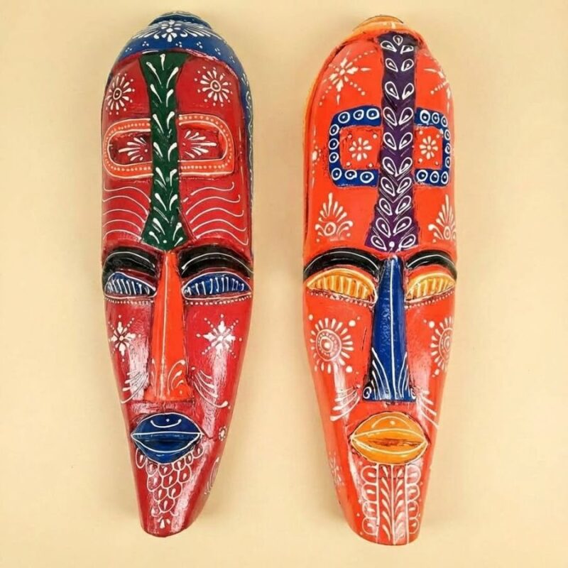 Furnshine – African Egyptian Face Wall Mask Hanging Set – Nazar Battu Tribal Wooden Masks for Home Entrance, Living Room Decor – 18 Inch Pack of 2