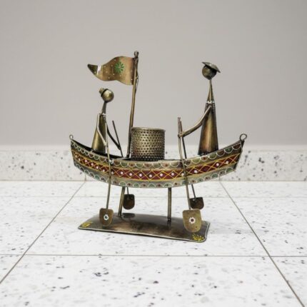 Furnshine – Embry Multicolor Iron 2 Human in Boat Pen Holder & Showpiece, Unique Artistic Pen Stand, Desk Organizer for Home & Office