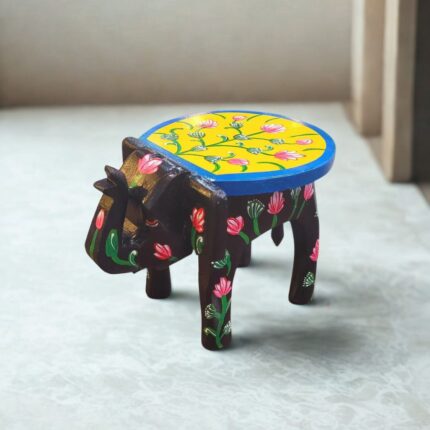 Furnshine – Cute Handcrafted Wooden Small Elephant Stool – Hand-Painted Indian Decor for Pooja, Home Showpiece (5″L x 3″W x 4″H)