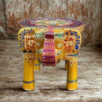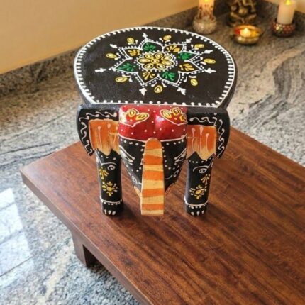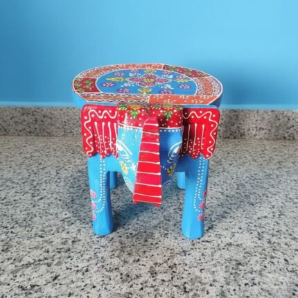 - Authentic Rajasthani hand-painted wooden elephant stool