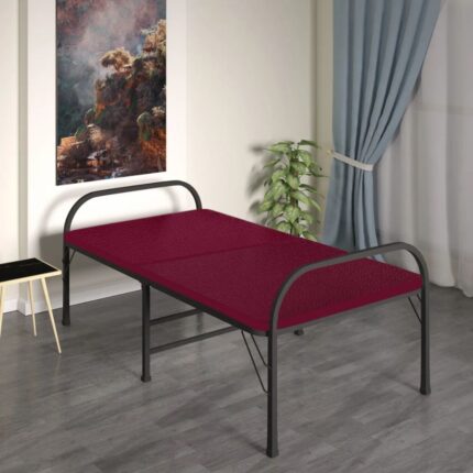 Furnshine – Metal Folding Bed with 1-Inch Maroon Mattress & Plywood Support | Space-Saving Guest Bed