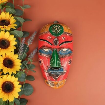 Furnshine – Handcrafted Red Wooden Tribal Wall Mask – Nazar Battu for Home Entrance, Living Room & Ethnic Decor – 12 Inch Hand Painted Hanging Art