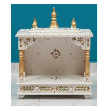 - Bottom storage drawer for pooja essentials like incense and diya.
