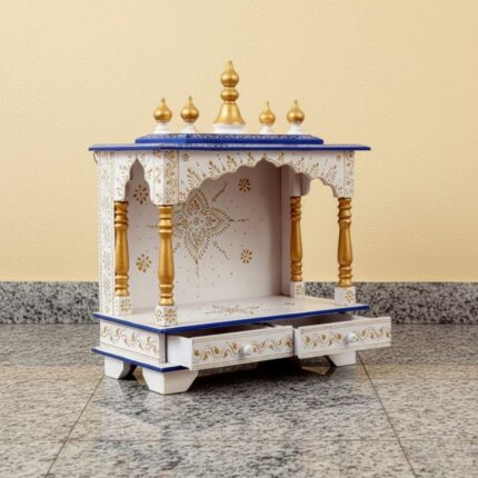 - Handcrafted wooden/MDF home temple in white, blue and golden finish.