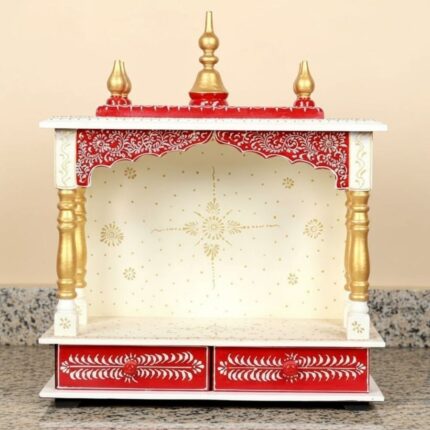 Furnshine – Wooden Temple Mandir for Home | Handcrafted White, Red & Gold Pooja Mandap with Drawers