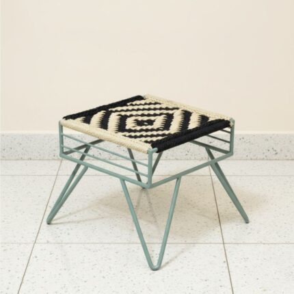 Furnshine – Revel Black & Off-White Woven Stool with Light Mint Green Metal Legs