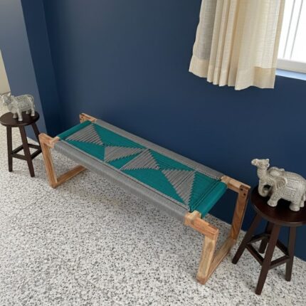 Furnshine – Doe Solid Wood Handwoven Bench (Teal Green & Grey)