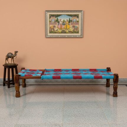 Furnshine – Thorne Solid Sheesham Wood Handwoven Charpai/Khaat (Blue & Red)