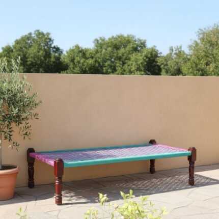 Furnshine – Vinny Solid Sheesham Wood Handmade Woven Charpai/Khatiya (Pink & Green)