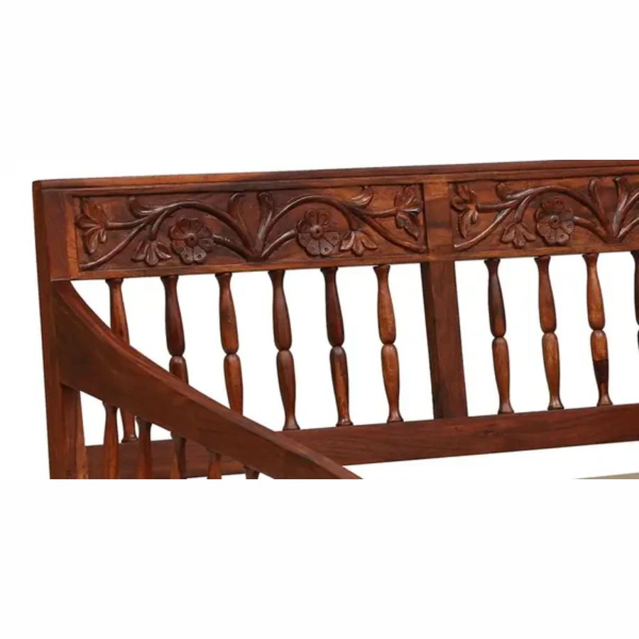 - Material: The sofa is made from solid Sheesham wood, known for its durability and rich grain patterns. This ensures a long-lasting and sturdy piece of furniture.