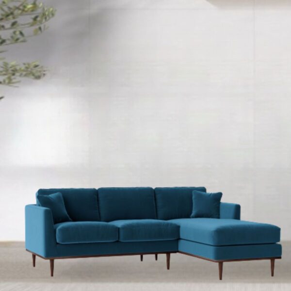 The Eirene L-Shaped Sofa effortlessly blends modern design with ultimate comfort. It offers spacious seating for family or guests, with a stylish L-shaped configuration that fits any living space. Featuring a distinctive sloped arm design and plush cushioning, it invites you to lounge in both elegance and relaxation. Built with a sturdy solid wood base and legs, this L-shaped sofa ensures lasting durability.