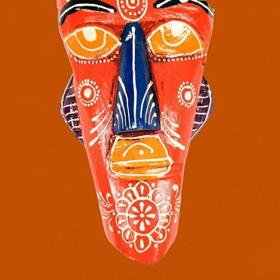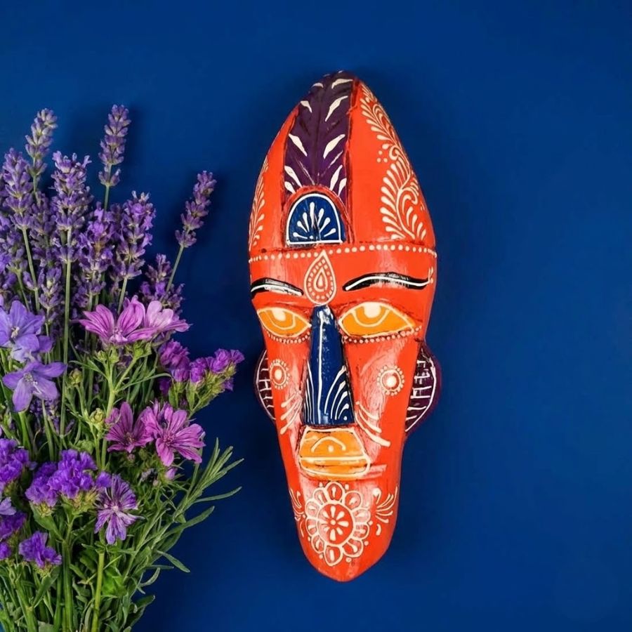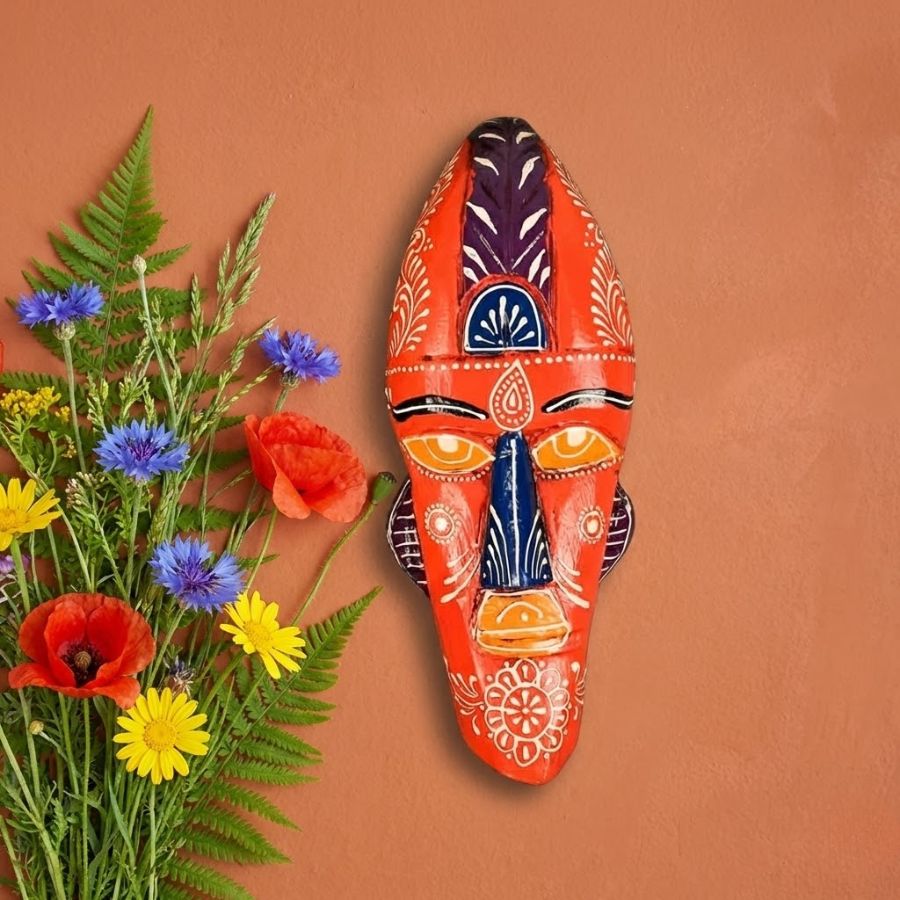 Furnshine – African Egyptian Orange Wall Mask Nazar Battu 12 Inch – Tribal Wooden Hanging for Home Entrance, Living Room, Door, Balcony Decor | Evil Eye Protection