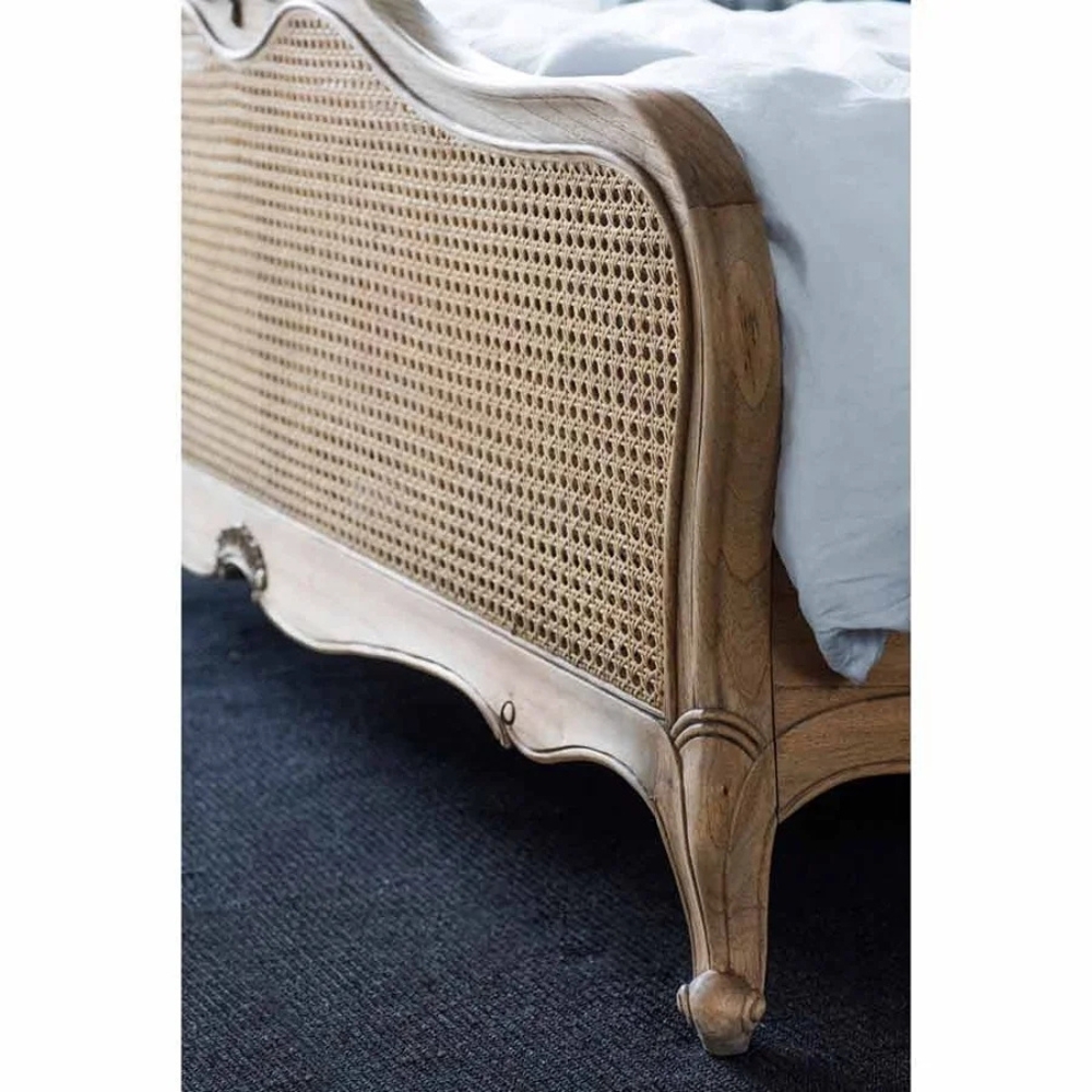 Bring timeless elegance into your bedroom with the Aldous Classic Sheesham Wood & Carved Rattan Bed. Exquisitely handcrafted from premium quality wood, this bed features intricately carved details and a beautifully curved silhouette reminiscent of classic French design. The woven cane work on the headboard and footboard adds a rustic, airy charm while maintaining a refined aesthetic. Finished in a light, natural tone, this bed enhances any traditional or vintage-inspired interior. Ideal for those who appreciate luxury and artisanal craftsmanship, it serves as a stunning centerpiece for your master suite or guest room. Experience comfort wrapped in classic sophistication with this regal bed.
