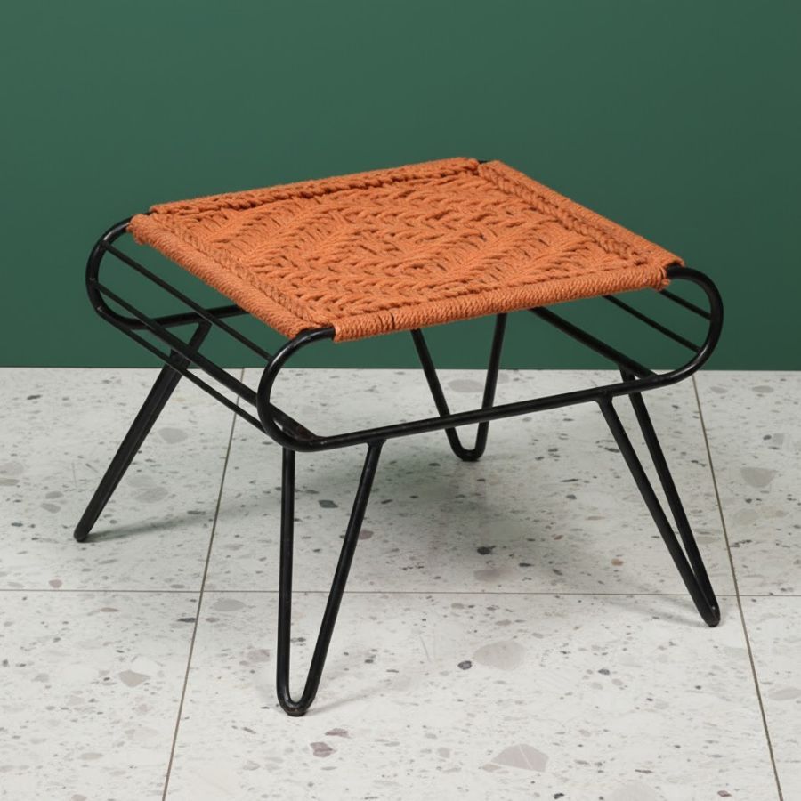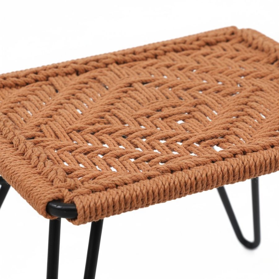 This Aldous Rust-Orange Woven Stool with Black Metal Legs features a striking combination of a rust-orange woven seat and sleek black metal legs. Its timeless retro design adds a touch of vintage flair while maintaining contemporary elegance. Handcrafted from quality materials, the stool is designed for durability and daily use in a variety of settings. Ideal as a seat, footrest, or decorative accent, its lightweight build makes it easy to move wherever needed. The comfortable woven seat ensures both support and style, and the easy-to-clean finish makes it practical for every home.