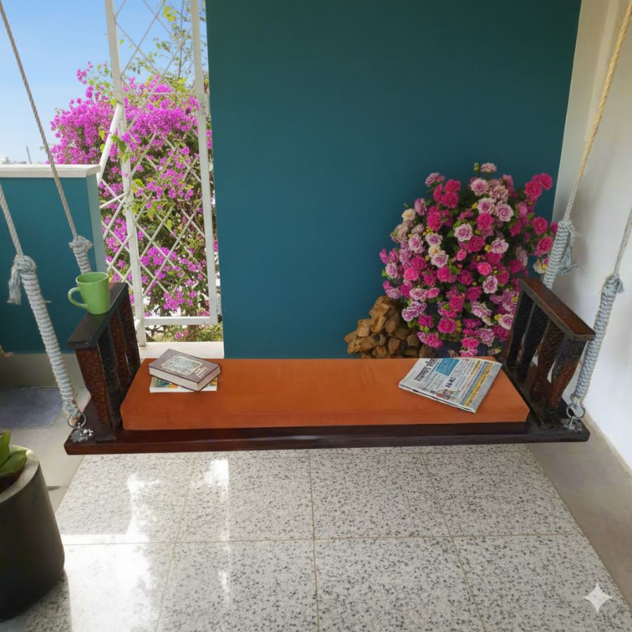 The Ashton Solid Wood Swing with Armrest adds timeless charm and relaxation to any home, crafted from solid Sheesham wood and featuring a bold rectangular design. Designed for indoor or outdoor verandahs, living rooms, or bedrooms, the swing is finished with hand-waxed premium polish for richness and durability. Each armrest is adorned with elegant hand carving, blending tradition with contemporary style. The thick, upholstered mattress ensures comfort for daily lounging, reading, or relaxation, while robust construction makes it safe and long-lasting, easily supporting up to 250kg.