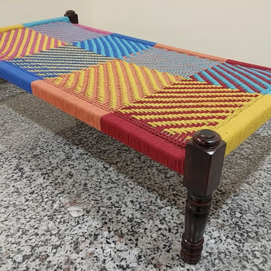 Furnshine – Barton Solid Sheesham Wood Handmade Woven Charpai/Khatiya (Multicolor)