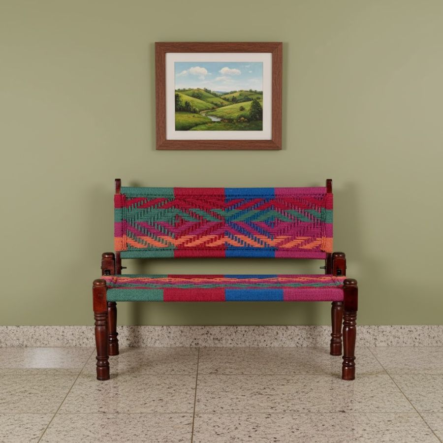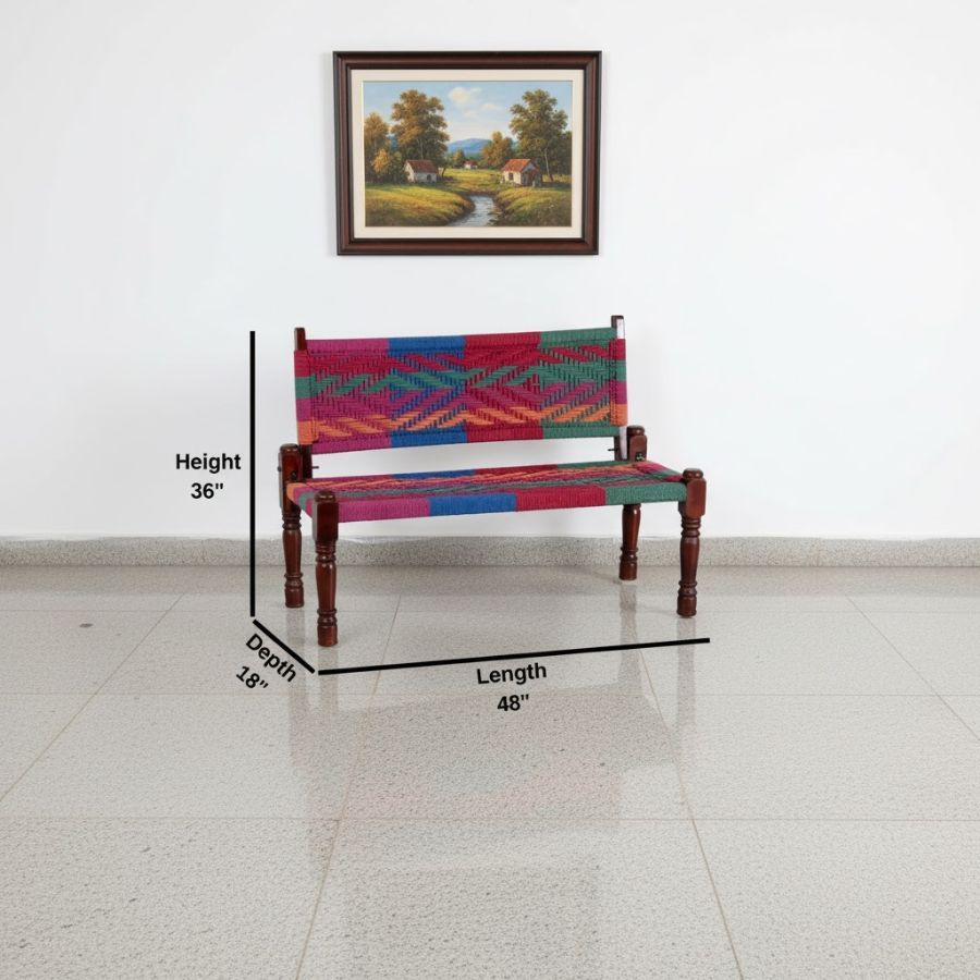 Furnshine – Blaze Solid Wood Handwoven Backrest Bench (Multicolor)