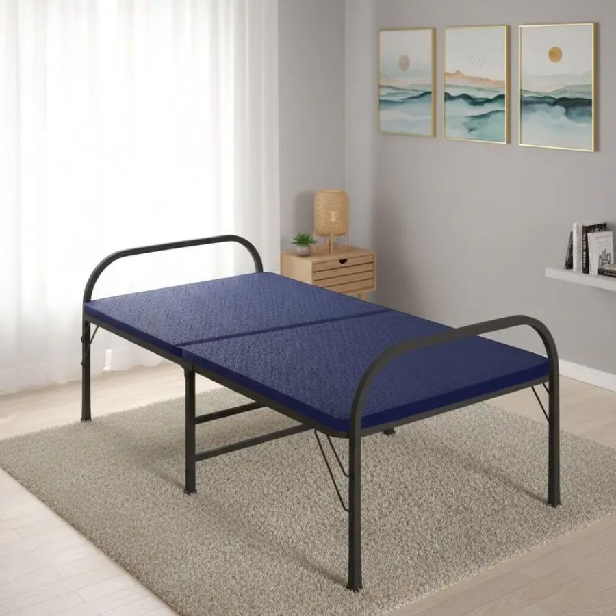 Furnshine – Multicolor Metal Folding Bed with Soft Mattress | Foldable Bed for Guest Room & Small Spaces