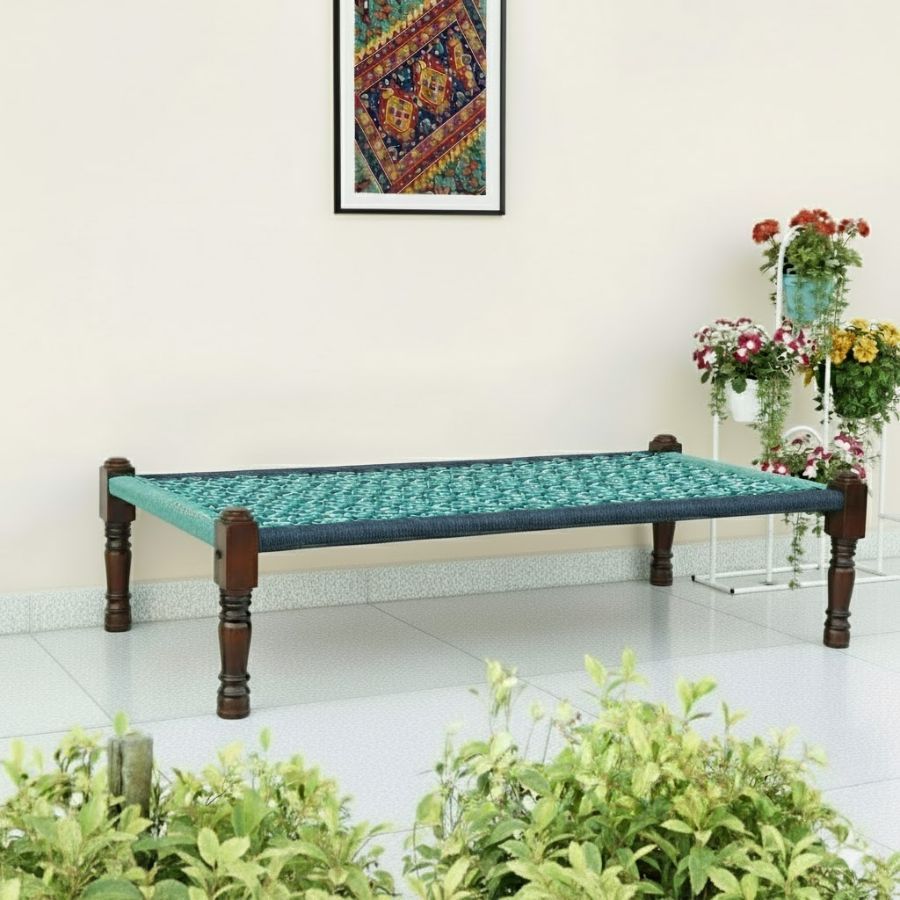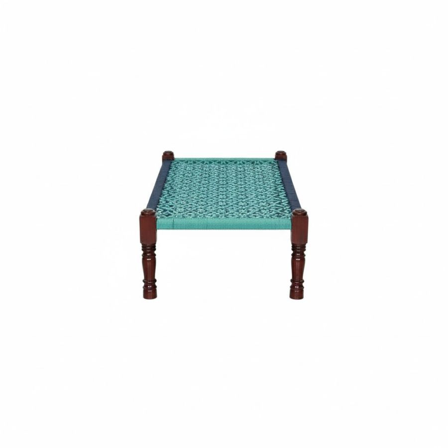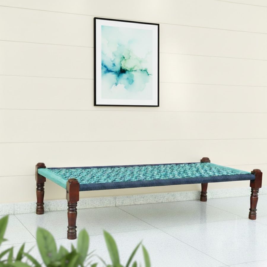 Furnshine – Bramwell Solid Sheesham Wood Handmade Woven Charpai/Khatiya (Turquoise Blue & Navy Blue)