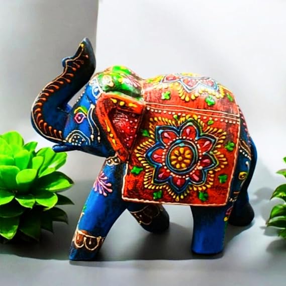 Furnshine – Bronson Multicolor Handcrafted Wooden Elephant Showpiece – Ethnic Painted Decorative Figurine for Home & Office Decor