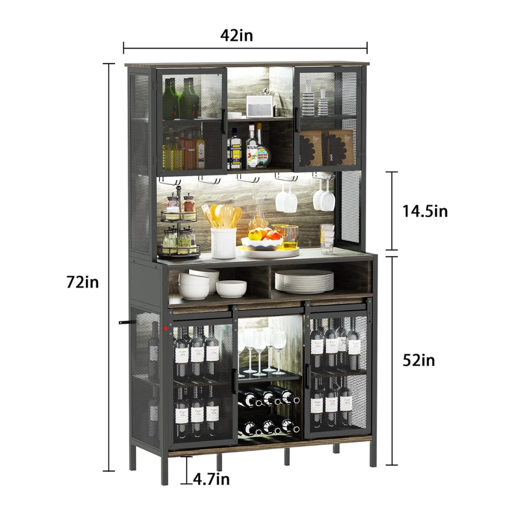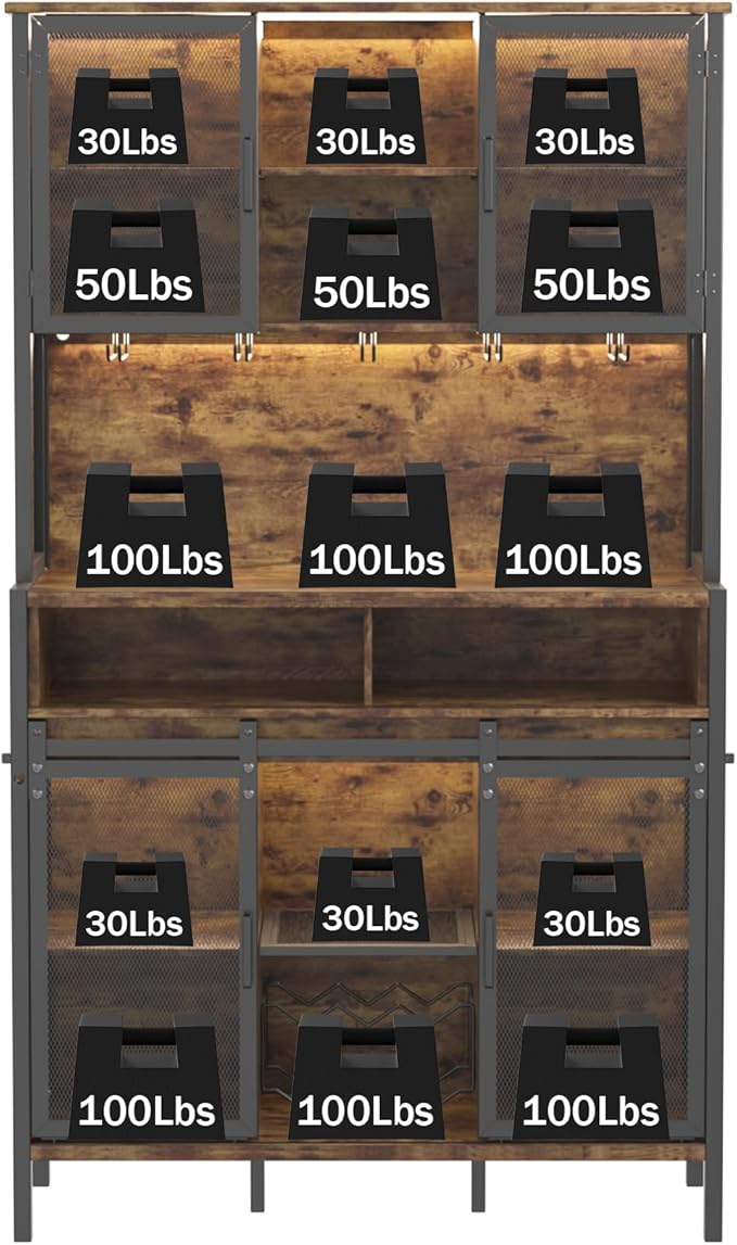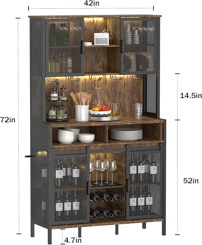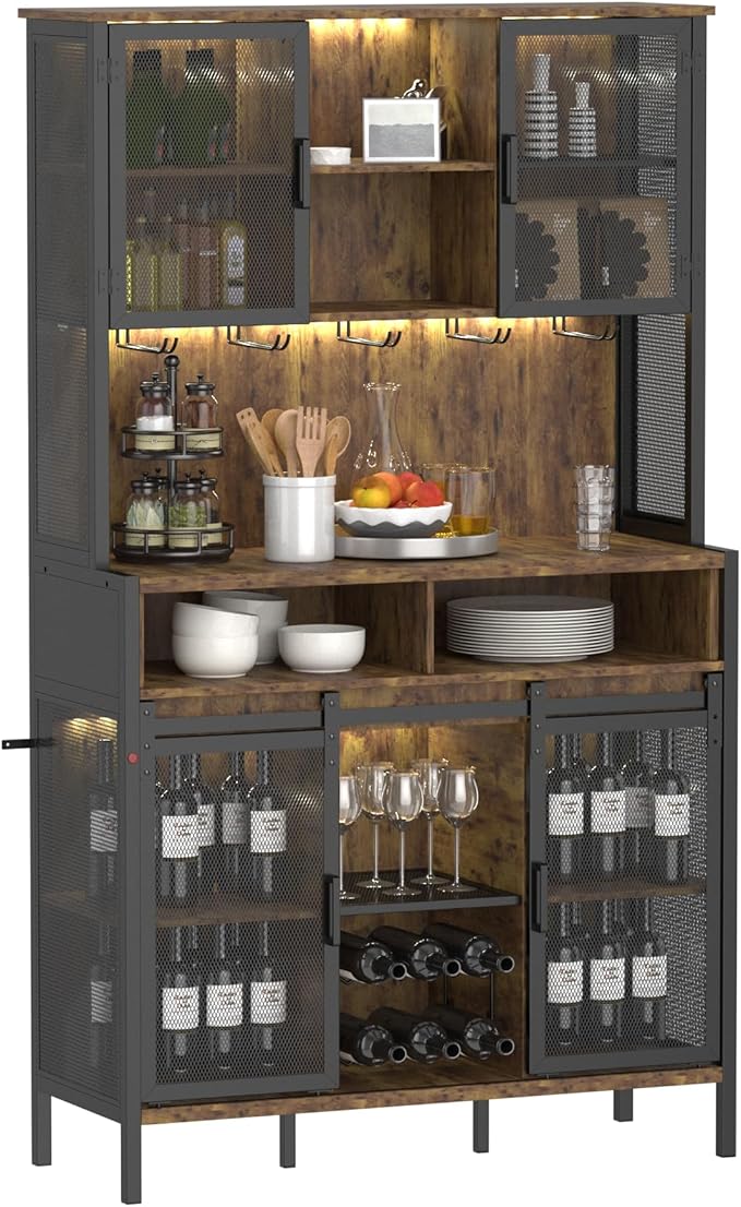 • Versatile Industrial Kitchen Cabinet with RGB Color-Changing LED Lights: This kitchen cabinet takes advantage of every inch of your space, showcasing different spaces as the barn door moves. Use it flexibly as an alcohol cabinet, kitchen pantry, china cabinet, coffee station, microwave stand, kitchen cabinet, or credenza.