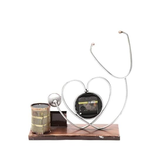 Celebrate medical professionals with the Furnshine Cody Stethoscope Desk Organizer Clock – Multicolor Metal Heart Showpiece with Pen Holder & Wooden Base for Doctors. This artistic, multicolor metal showpiece features a unique stethoscope-shaped frame with a classic clock set in a heart motif, accompanied by a pen holder and card tray on a sturdy wooden base. Both functional and decorative, it suits doctors’ offices, clinics, and study tables, adding personality and organization. Thoughtfully crafted with attention to detail, it helps keep essentials organized while highlighting compassion and care. Ideal as a meaningful gift for doctors and healthcare workers, combining elegance with utility.
